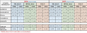 Trakya GDTBM 2024-2025 Yılları Aynı Dönem(1 Ocak -31 Aralık) Tır-Binek Araç-Yolcu Karşılaştırma İstatistikleri